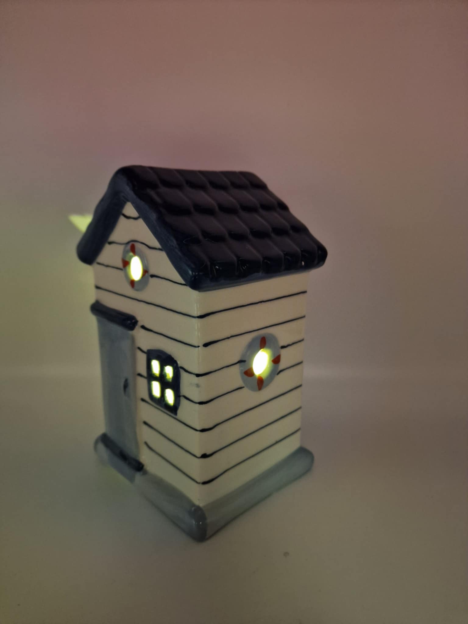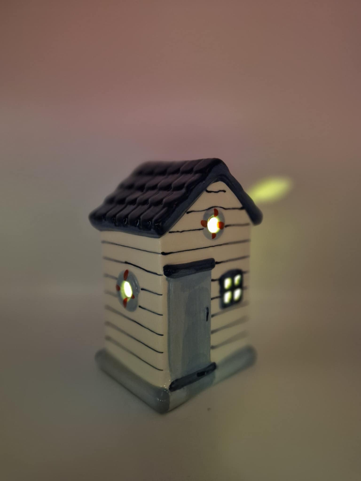 Light up your coastal dreams with this charming white ceramic beach hut! Perfect for adding a splash of seaside whimsy to any room, this delightful piece features soft LED lighting that creates a warm, inviting glow. Ideal for beach lovers, holiday décor enthusiasts, or anyone craving that breezy seaside vibe year-round. A playful accent that brings the magic of the shore right into your home.