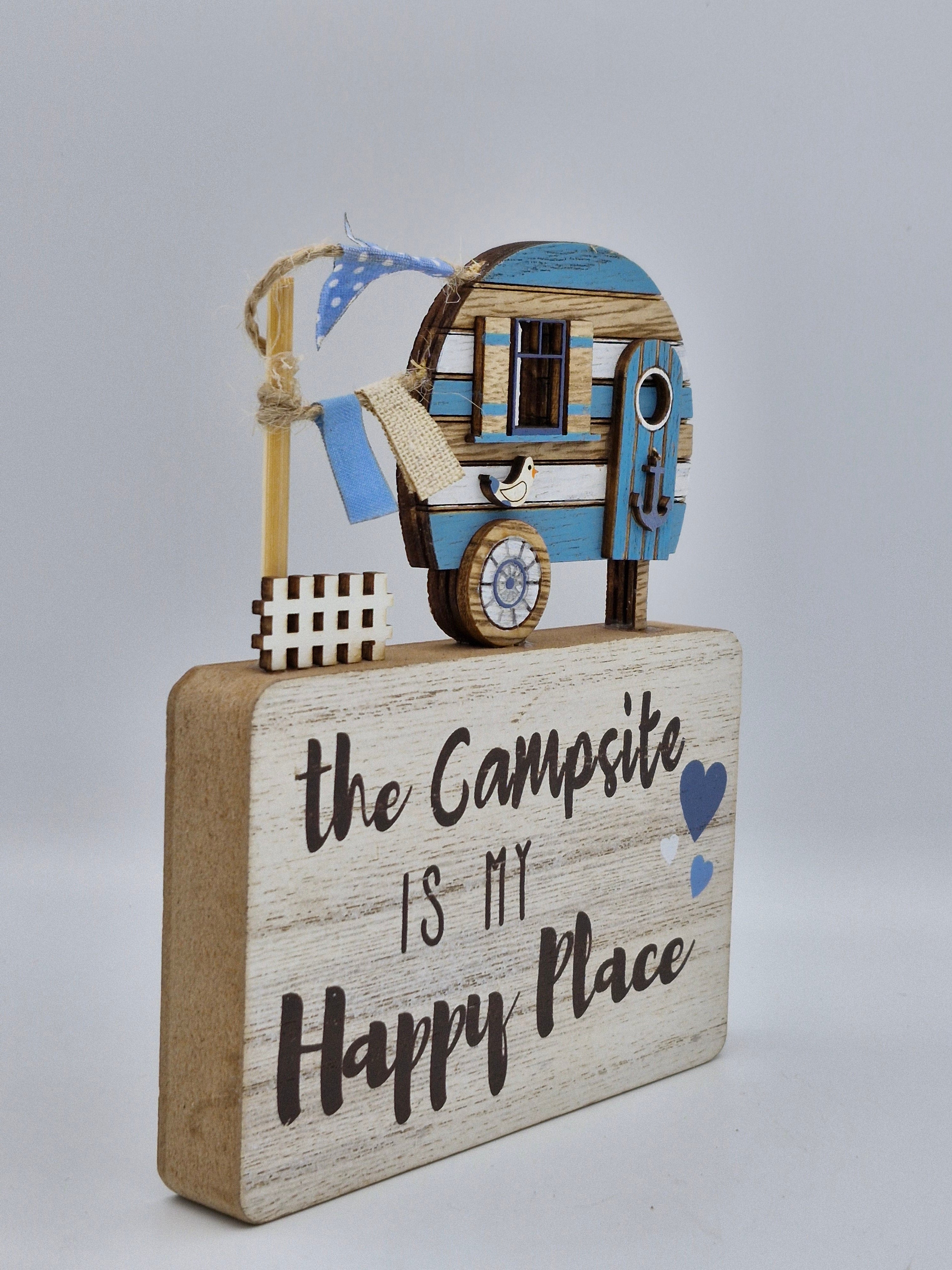 Wooden Caravan Scene: Campsite is my Happy Place