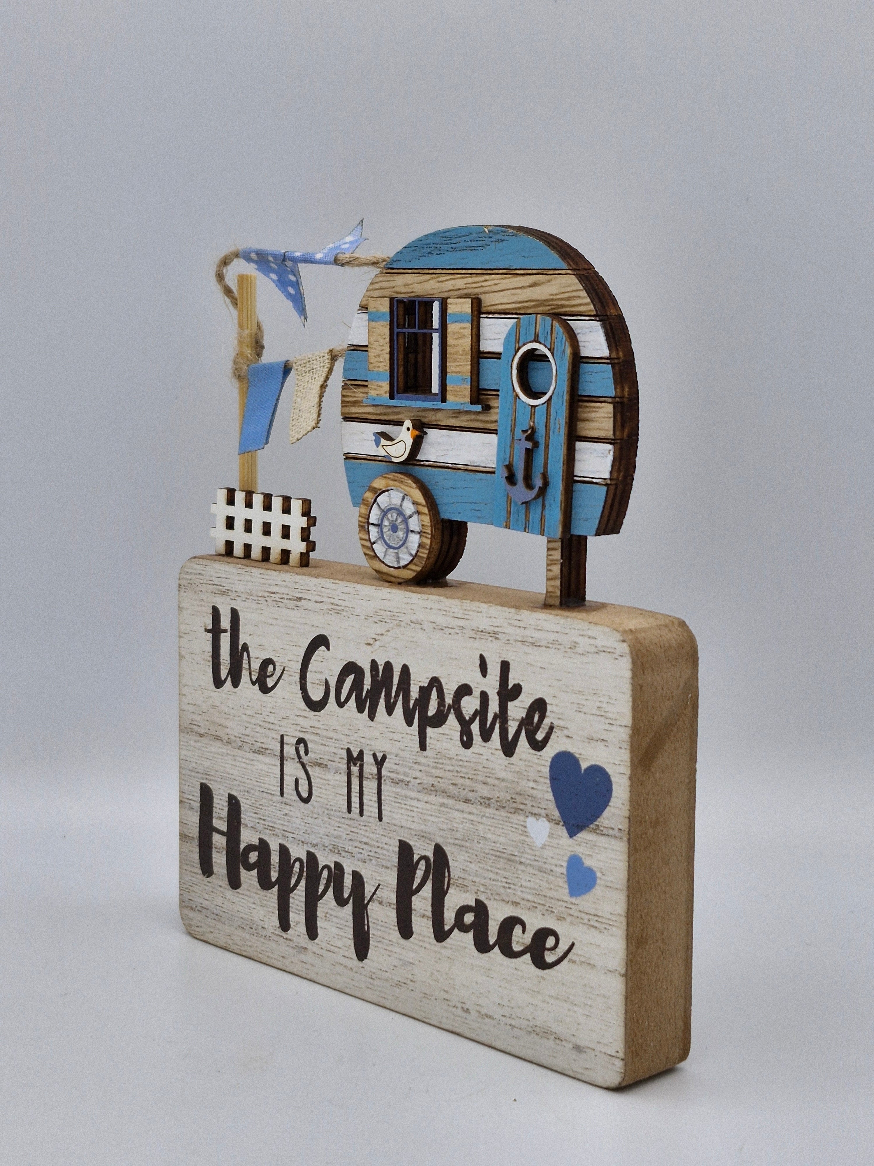 Bring a touch of wanderlust to your space with this charming wooden caravan scene. Featuring a delightful camper van nestled on a sturdy wooden base, complete with cheerful bunting strung overhead, it's the perfect reminder that the campsite is where happiness lives. Ideal for caravan enthusiasts, camping lovers, or anyone who dreams of the open road. A playful décor piece that celebrates the joy of adventure and simple living.