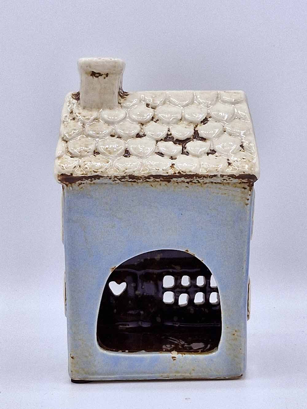 This ceramic village store tea light holder combines rustic charm with a quirky, artistic flair.