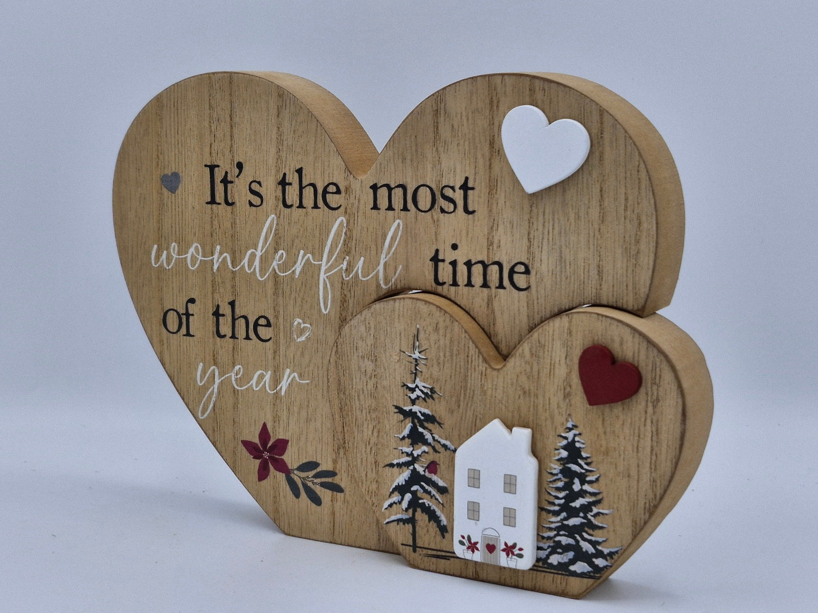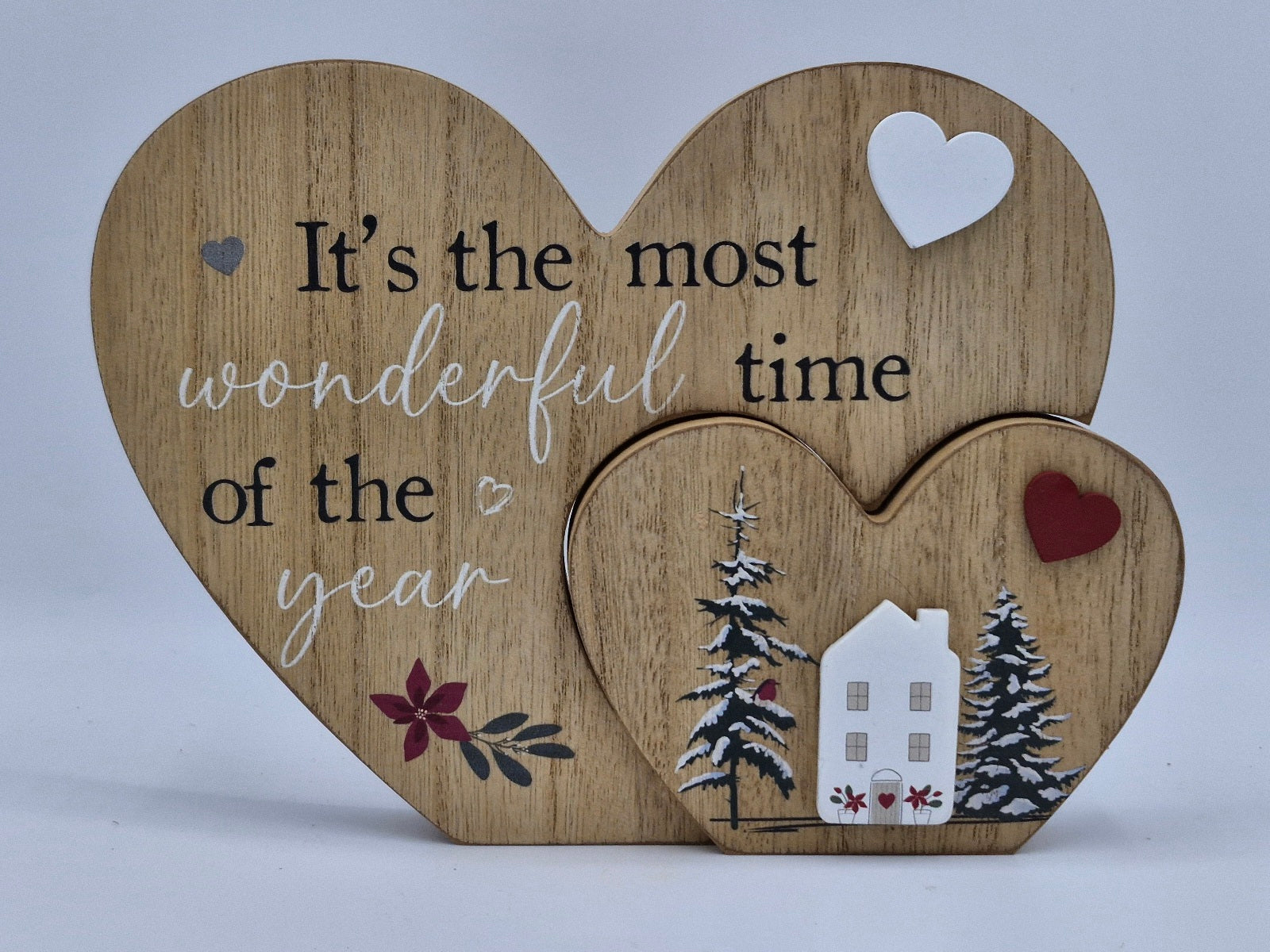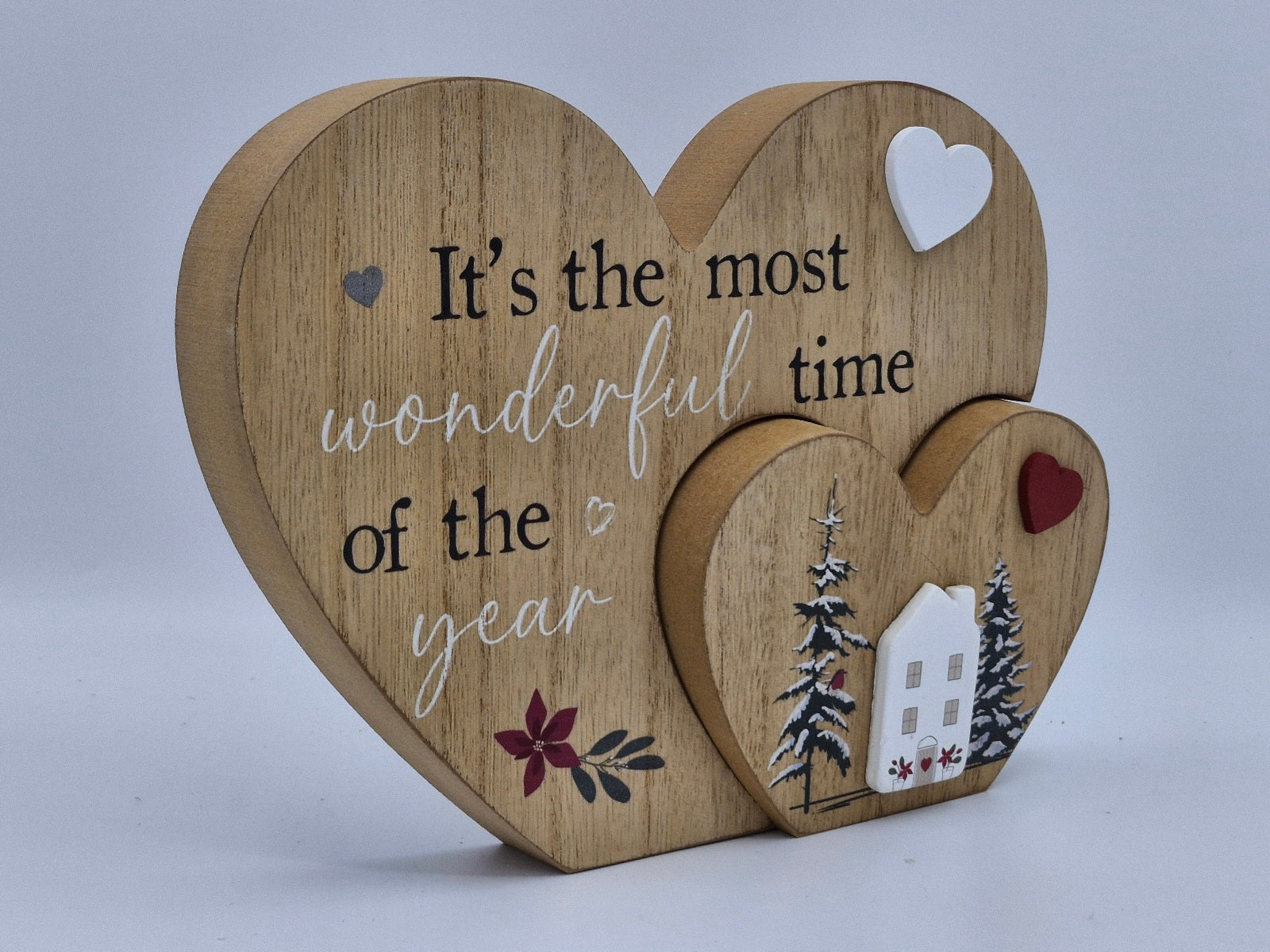 Celebrate the festive season with this elegant Wooden Christmas Heart, engraved with the charming phrase "The most wonderful time of the year."