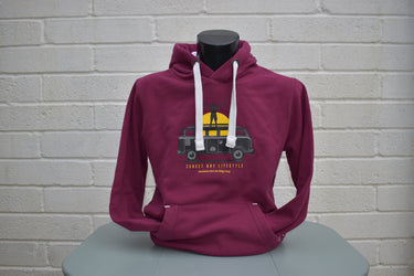 Unisex Cranberry Hoody "Sunset Campervan Logo"