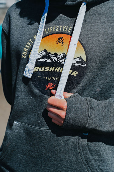 Unisex Charcoal Hoody "Rush Hour Sunset Mountain Biker"