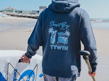 Our own inhouse designed split screen camper van (like a VW) Printed on heavyweight hoodies, exclusive to Sunset Bay Lifestyle.