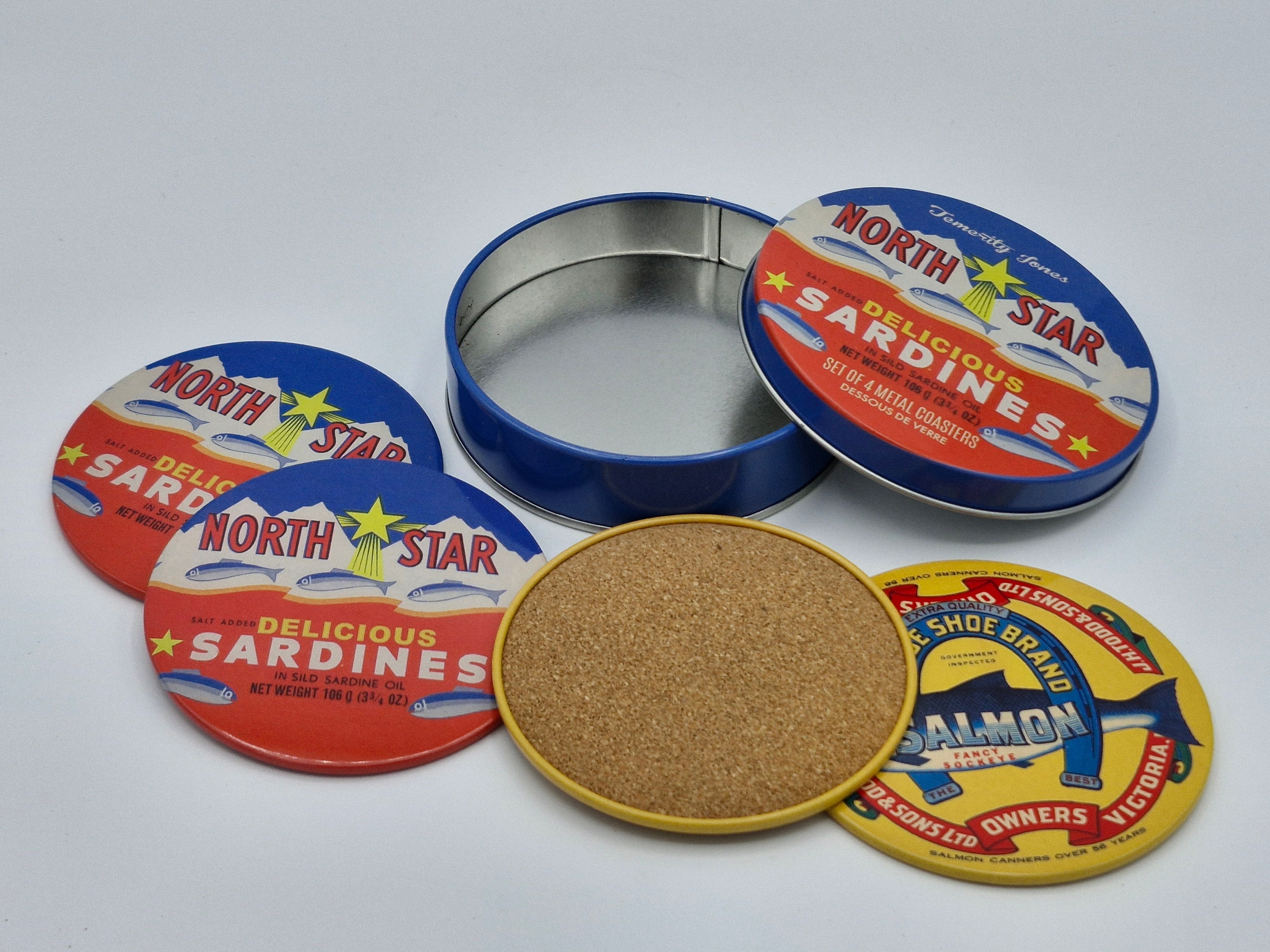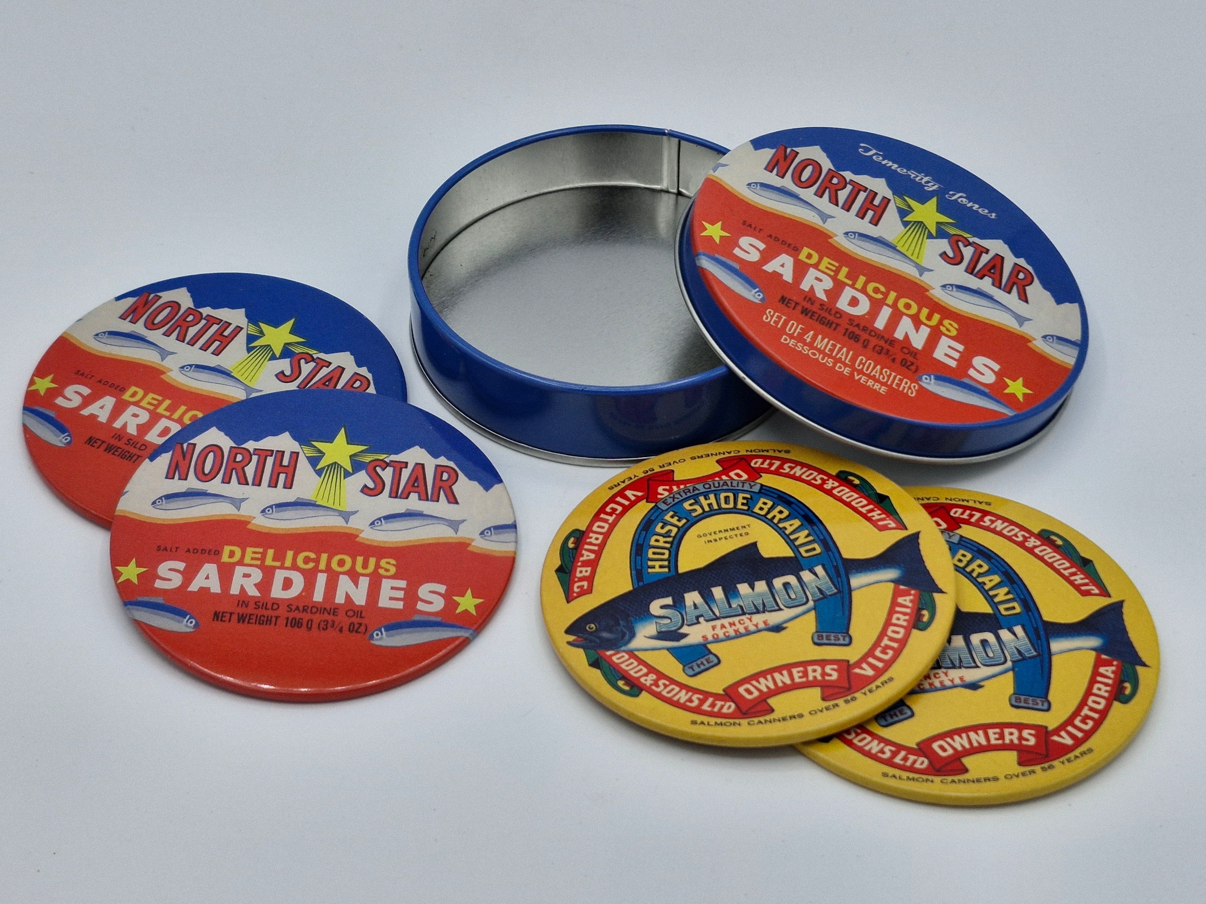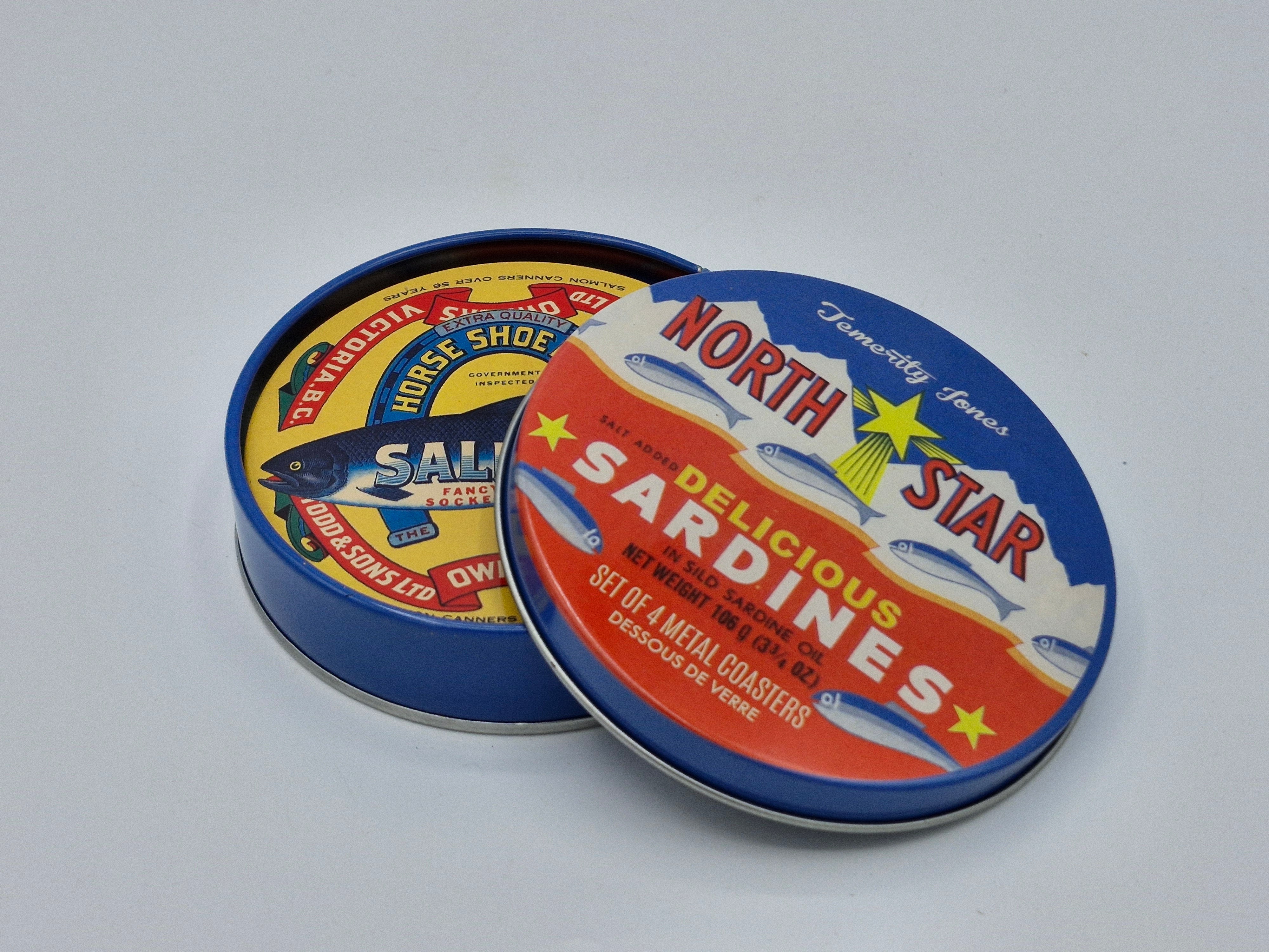 Metal retro Fish Tin Coasters In A Metal Storage Tin