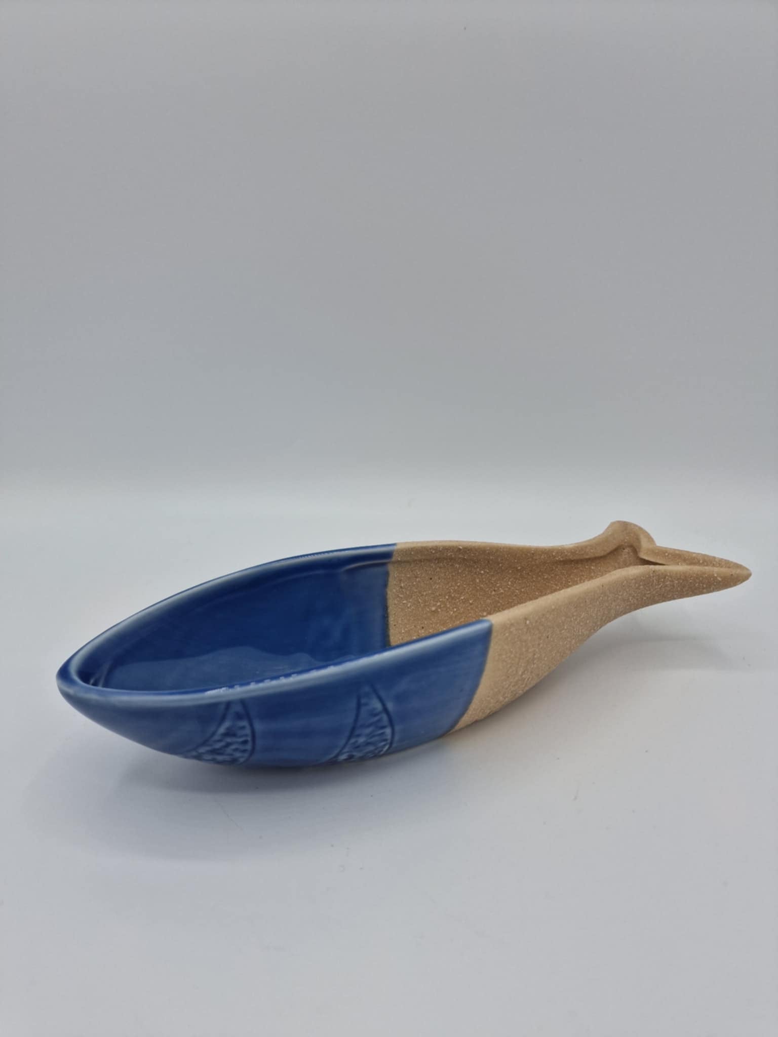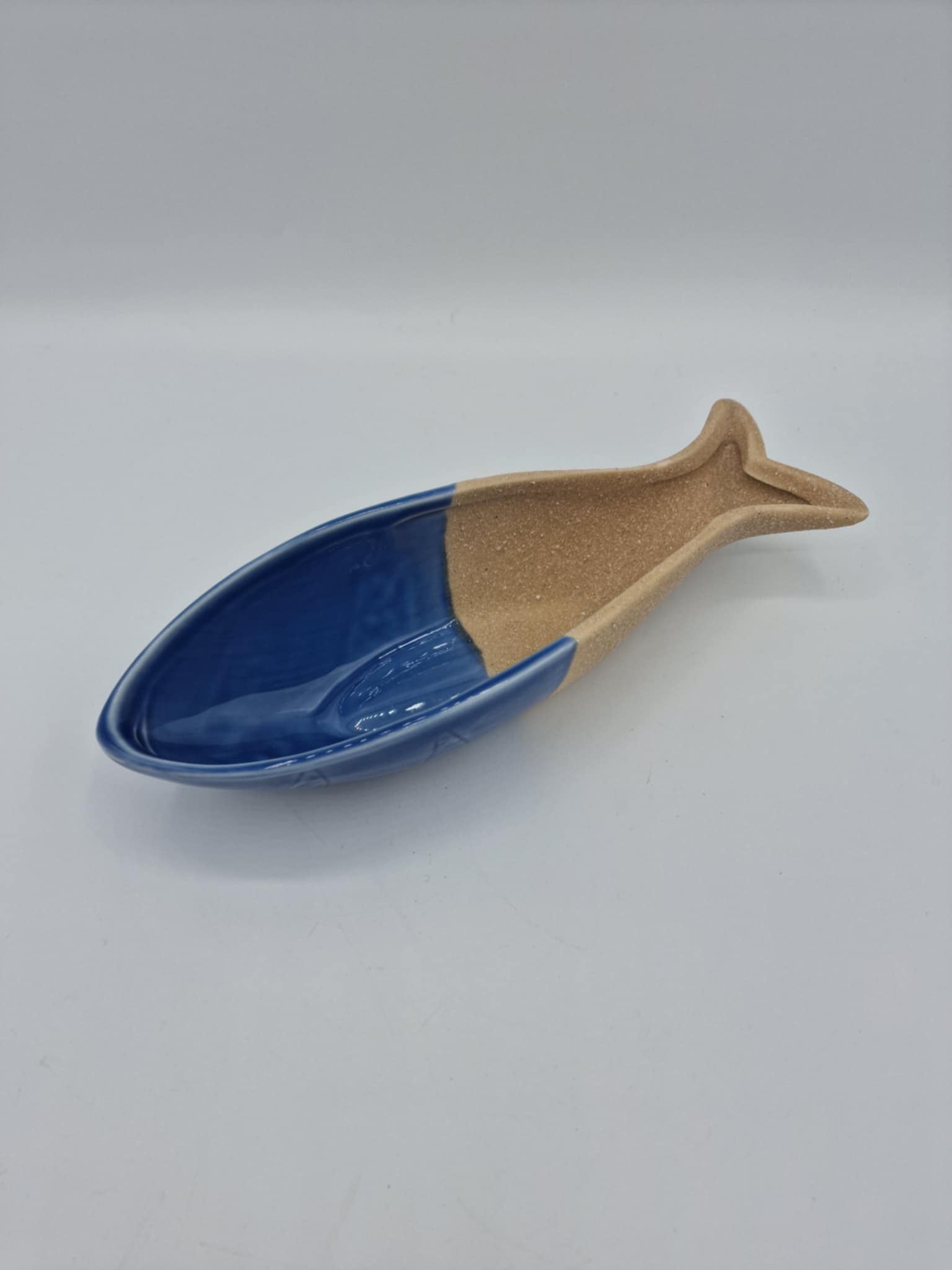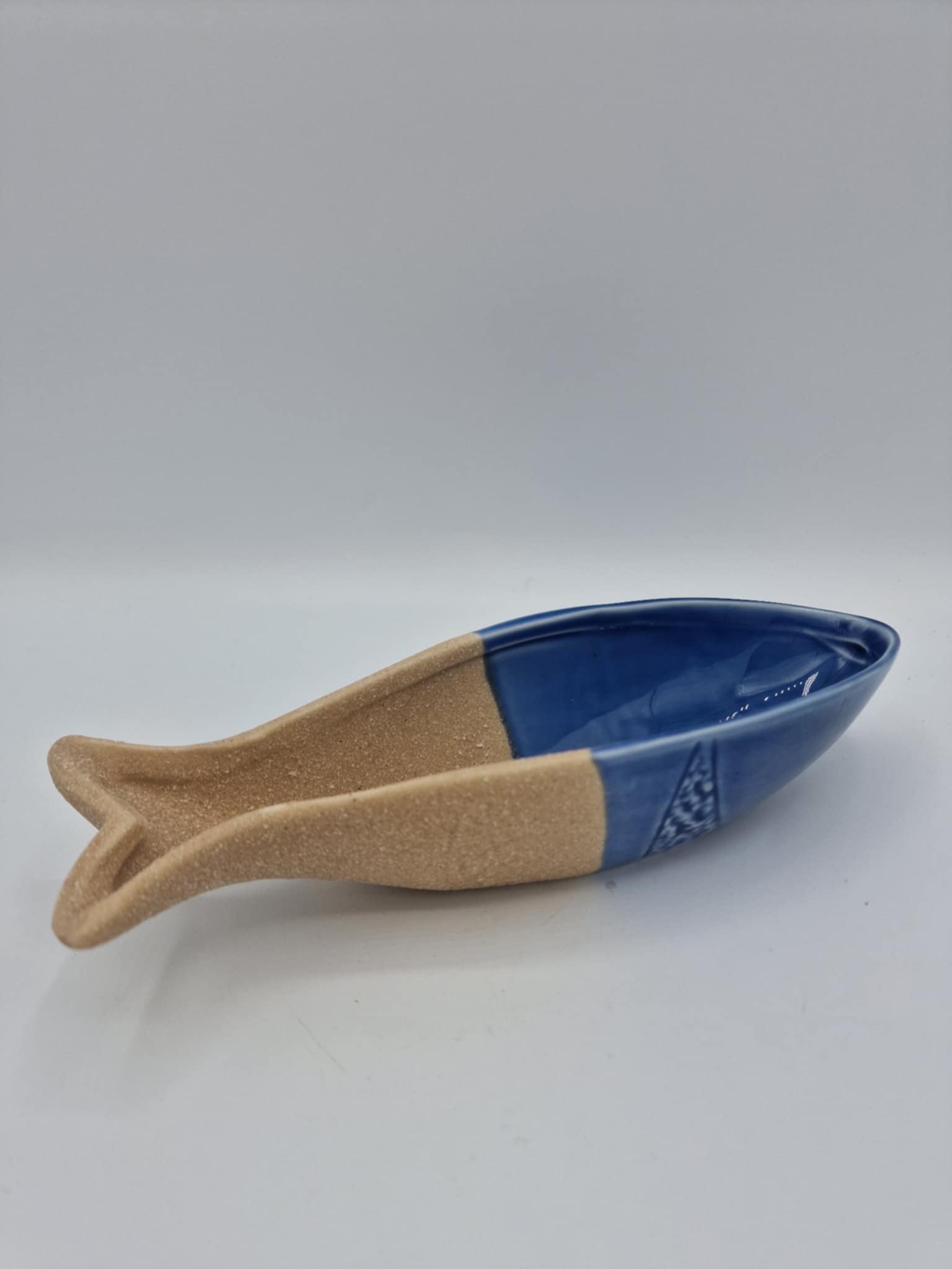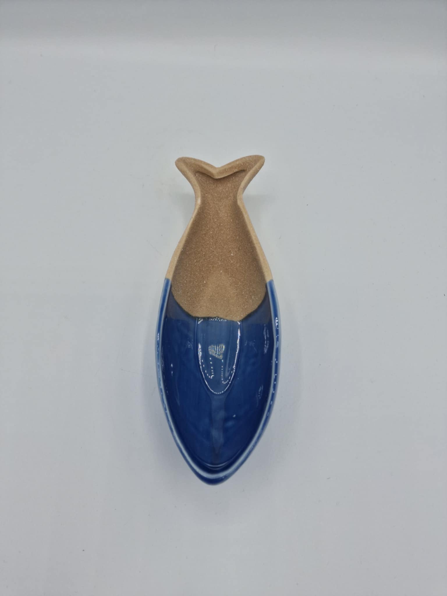 Dive into coastal charm with this delightful fish-shaped ceramic trinket dish. Crafted in soothing shades of blue and sand, it's the perfect catch for storing jewellery, keys, or small treasures. Whether perched on a bedside table, bathroom shelf, or desk, this whimsical piece brings a splash of seaside personality to any room. A playful nod to ocean living that's both functional and fun.