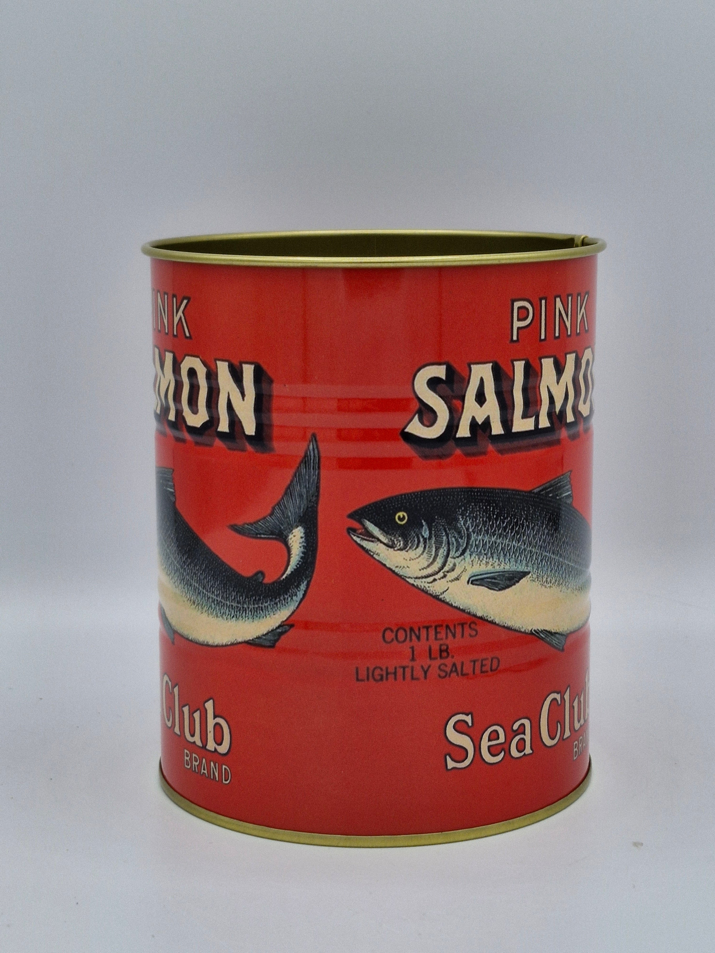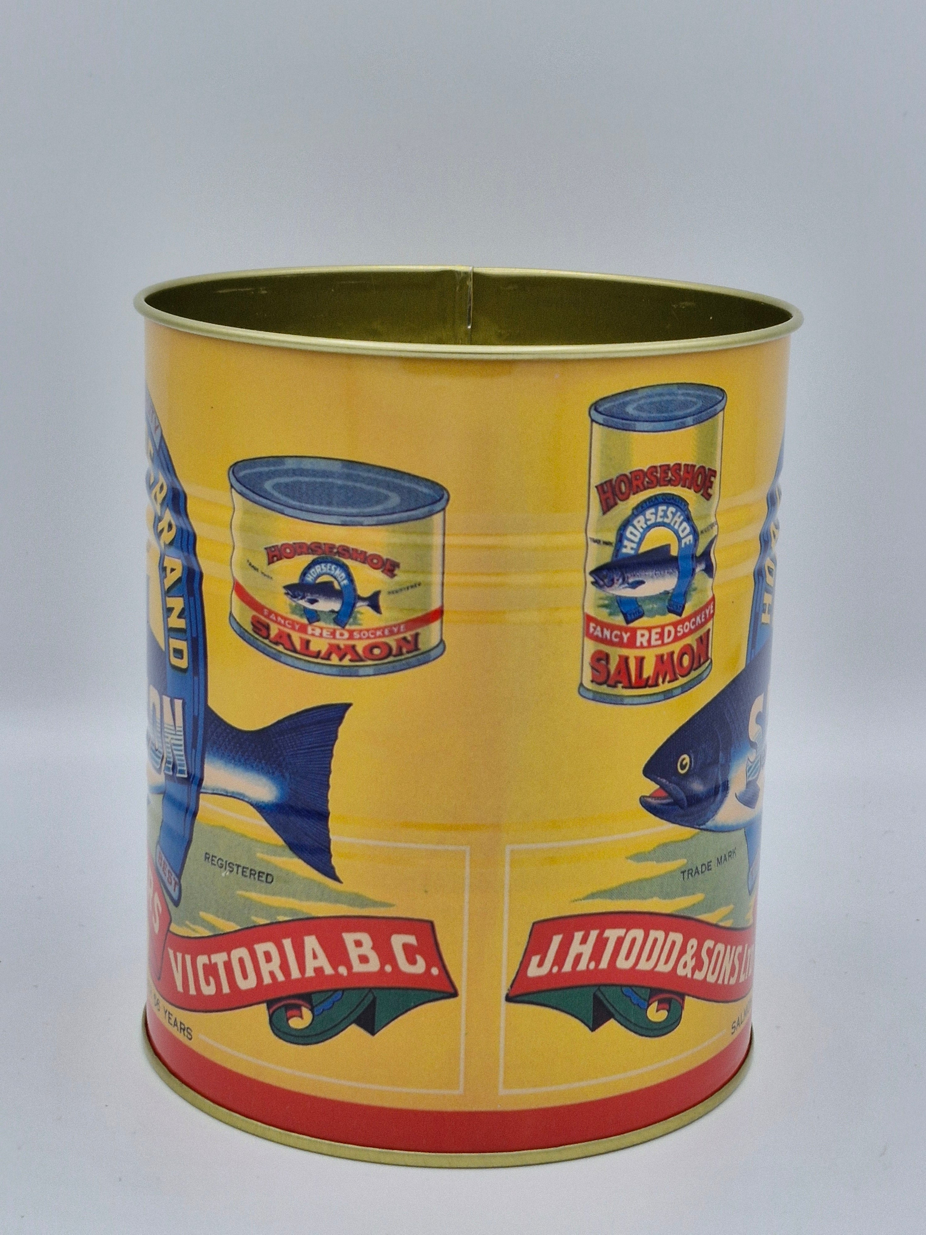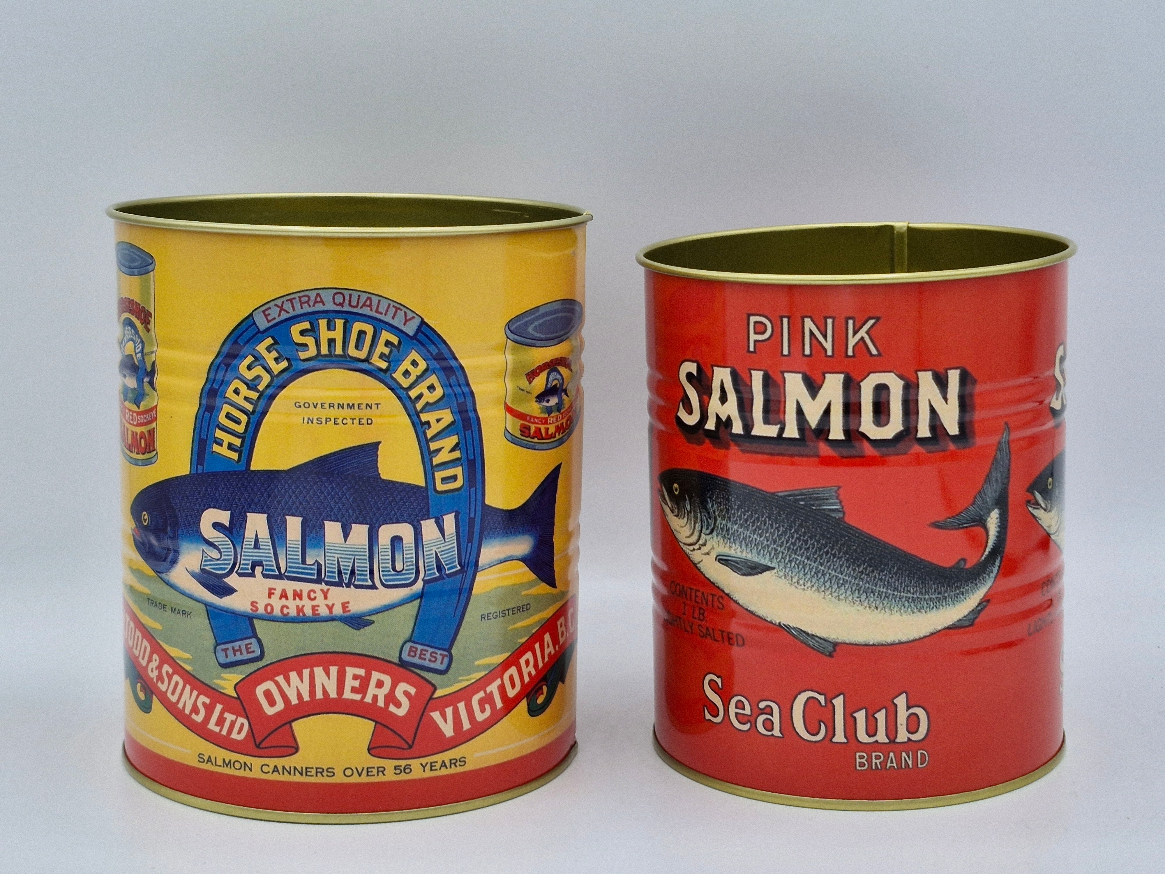 Dive into nostalgia with this charming duo of retro salmon tins!