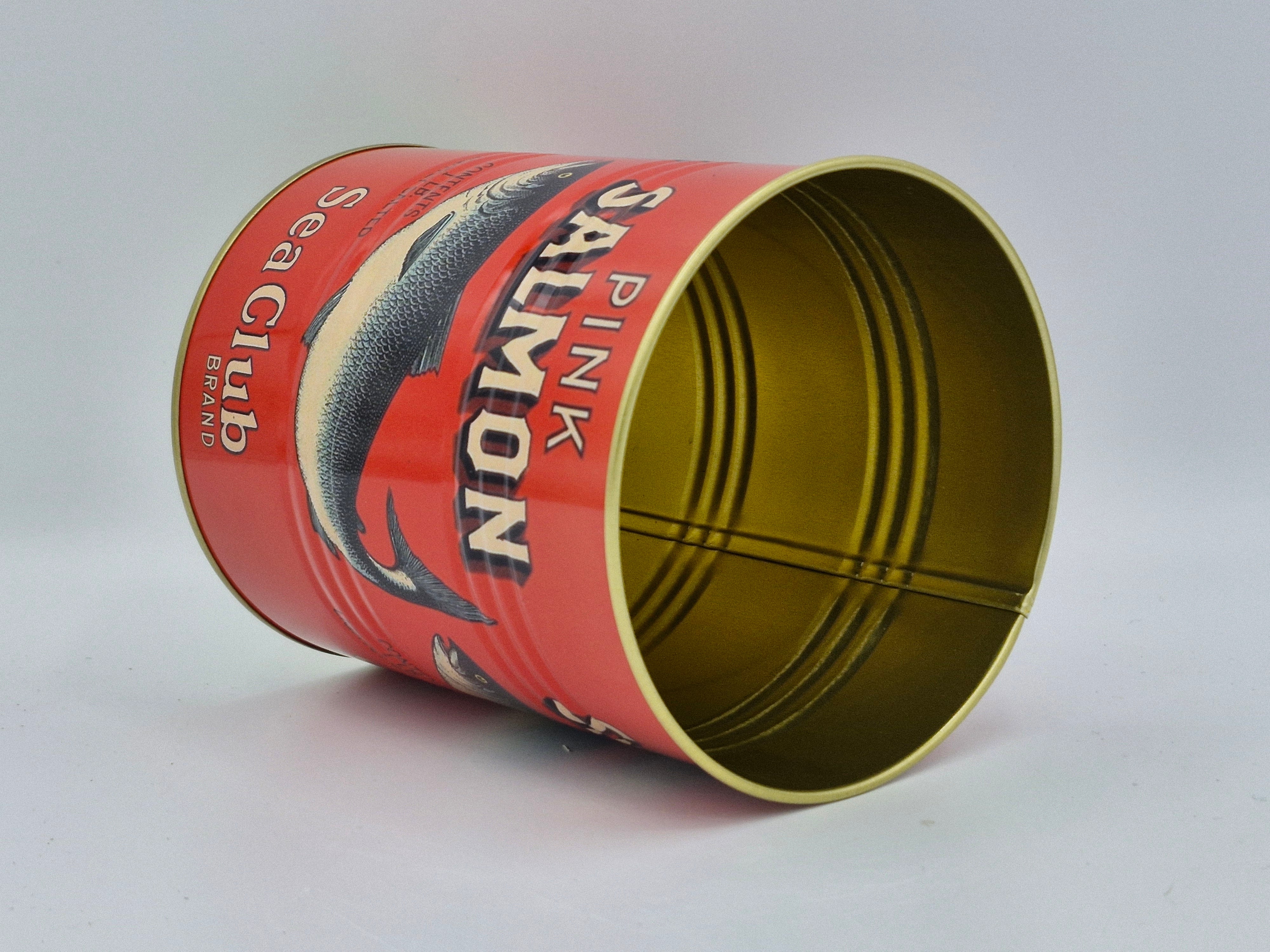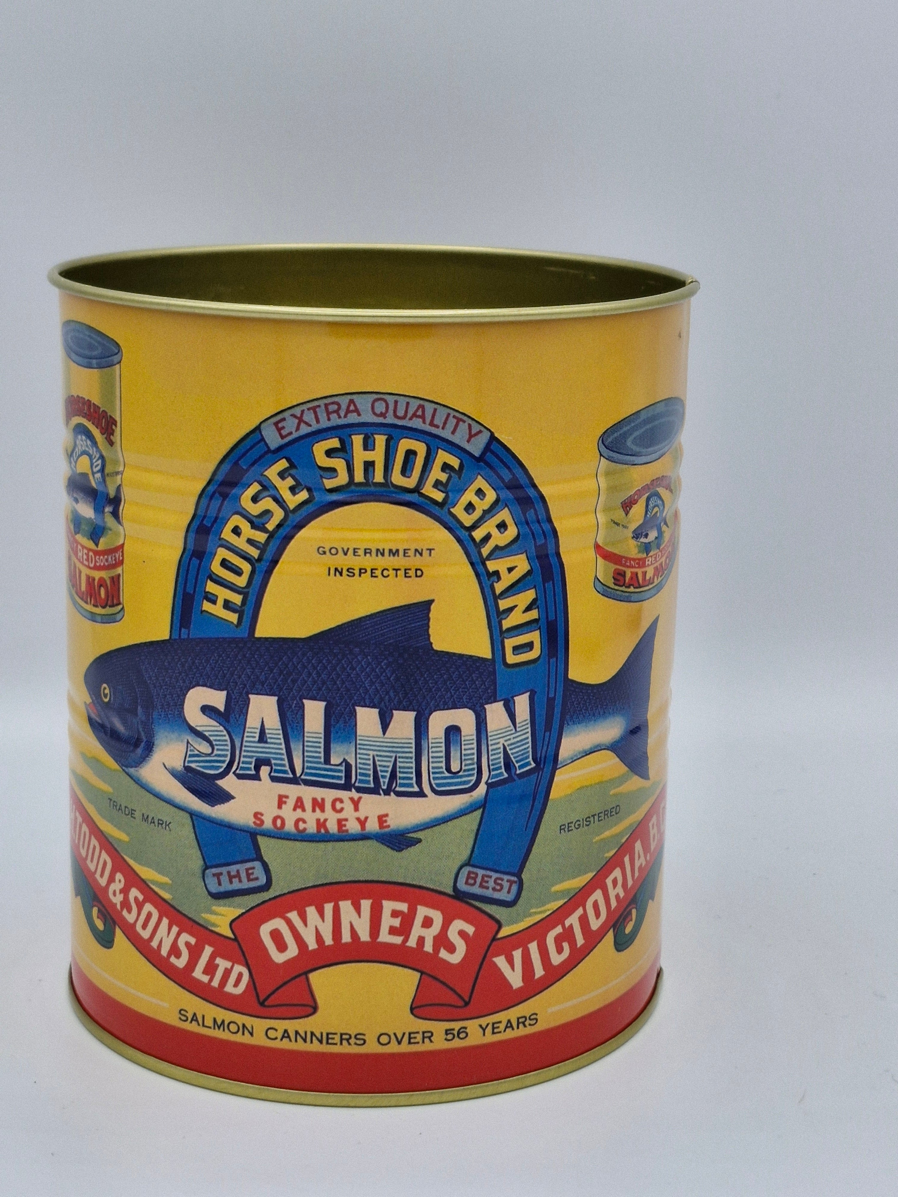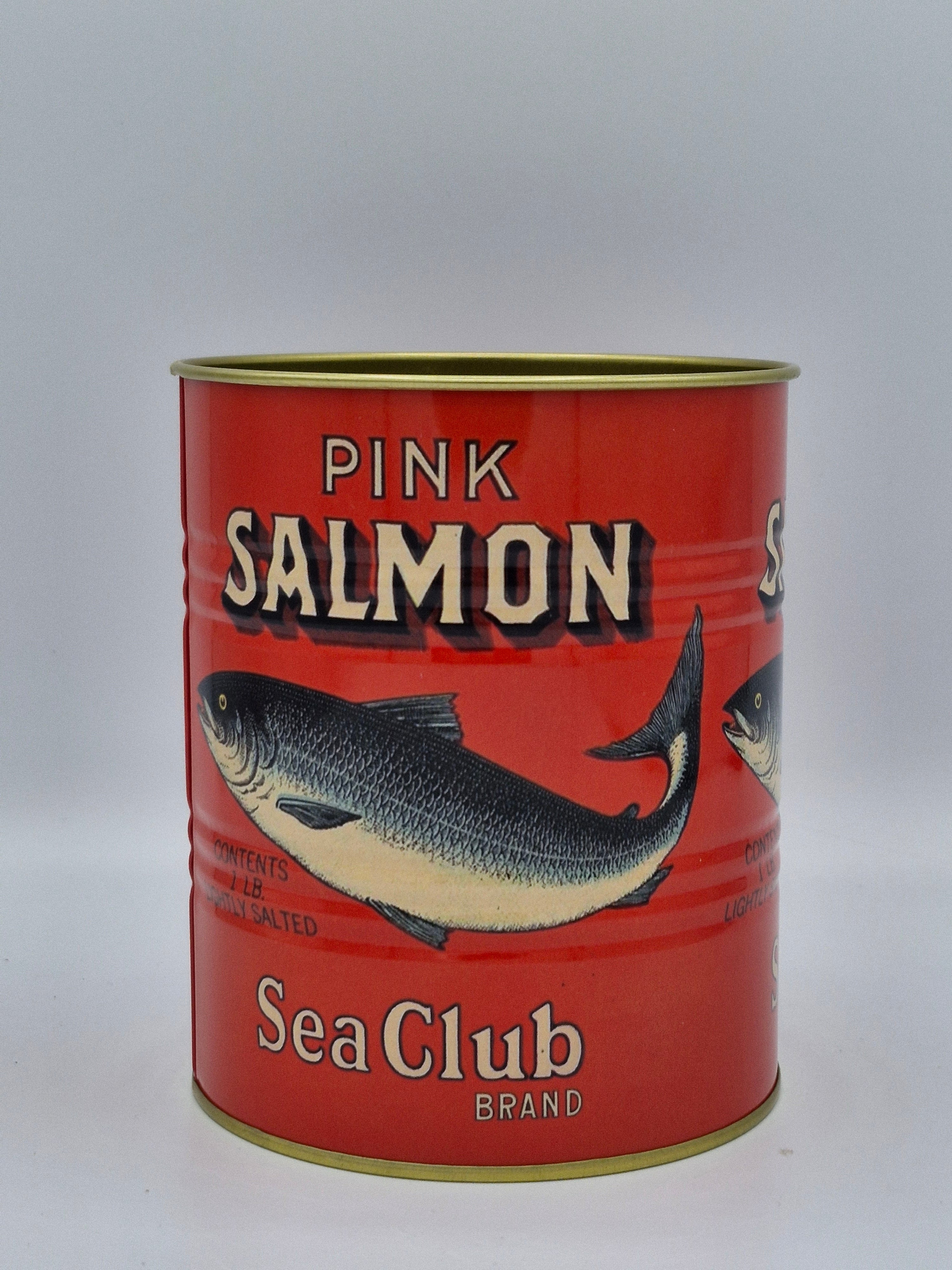 Dive into nostalgia with this charming duo of retro salmon tins!