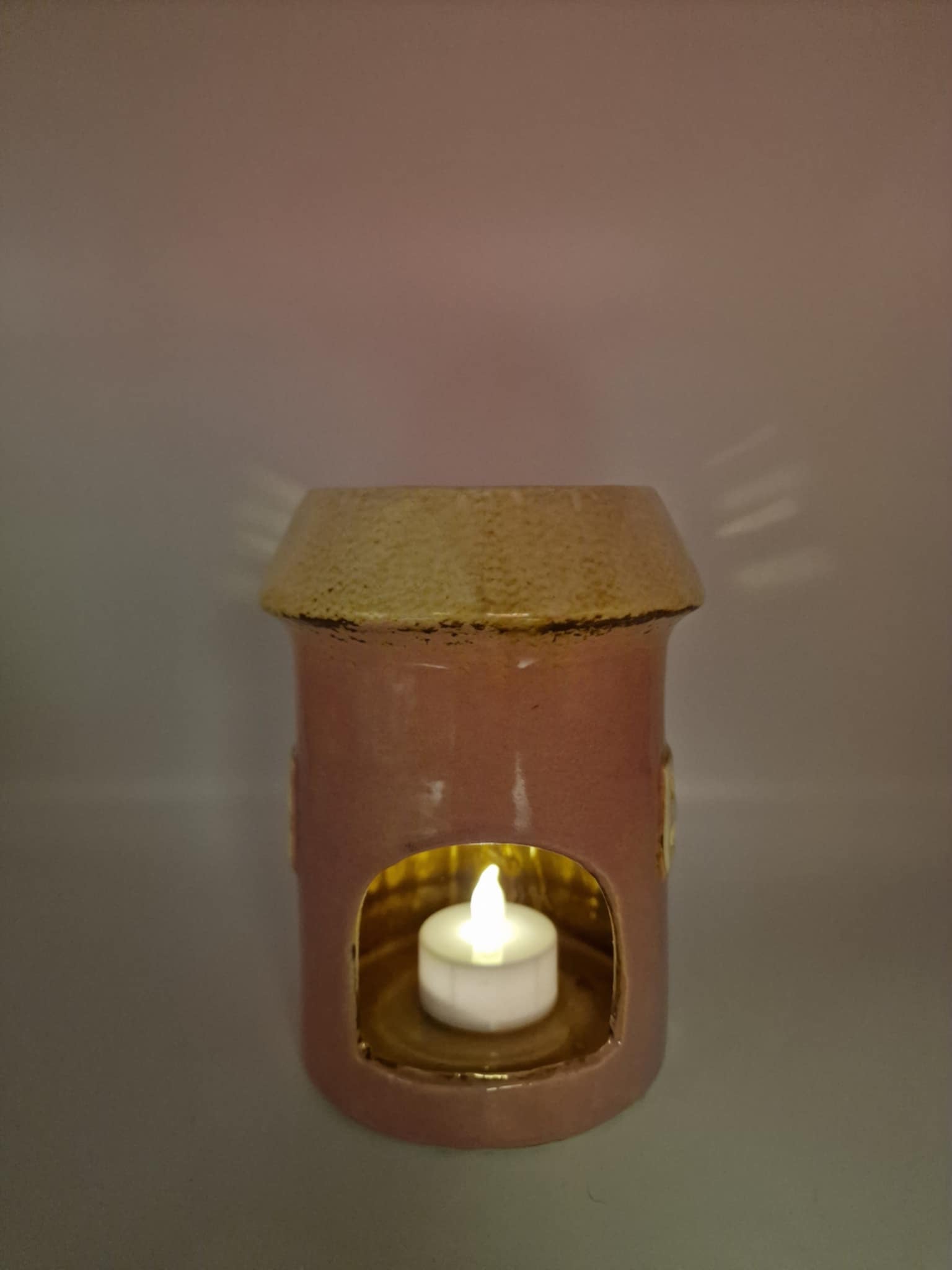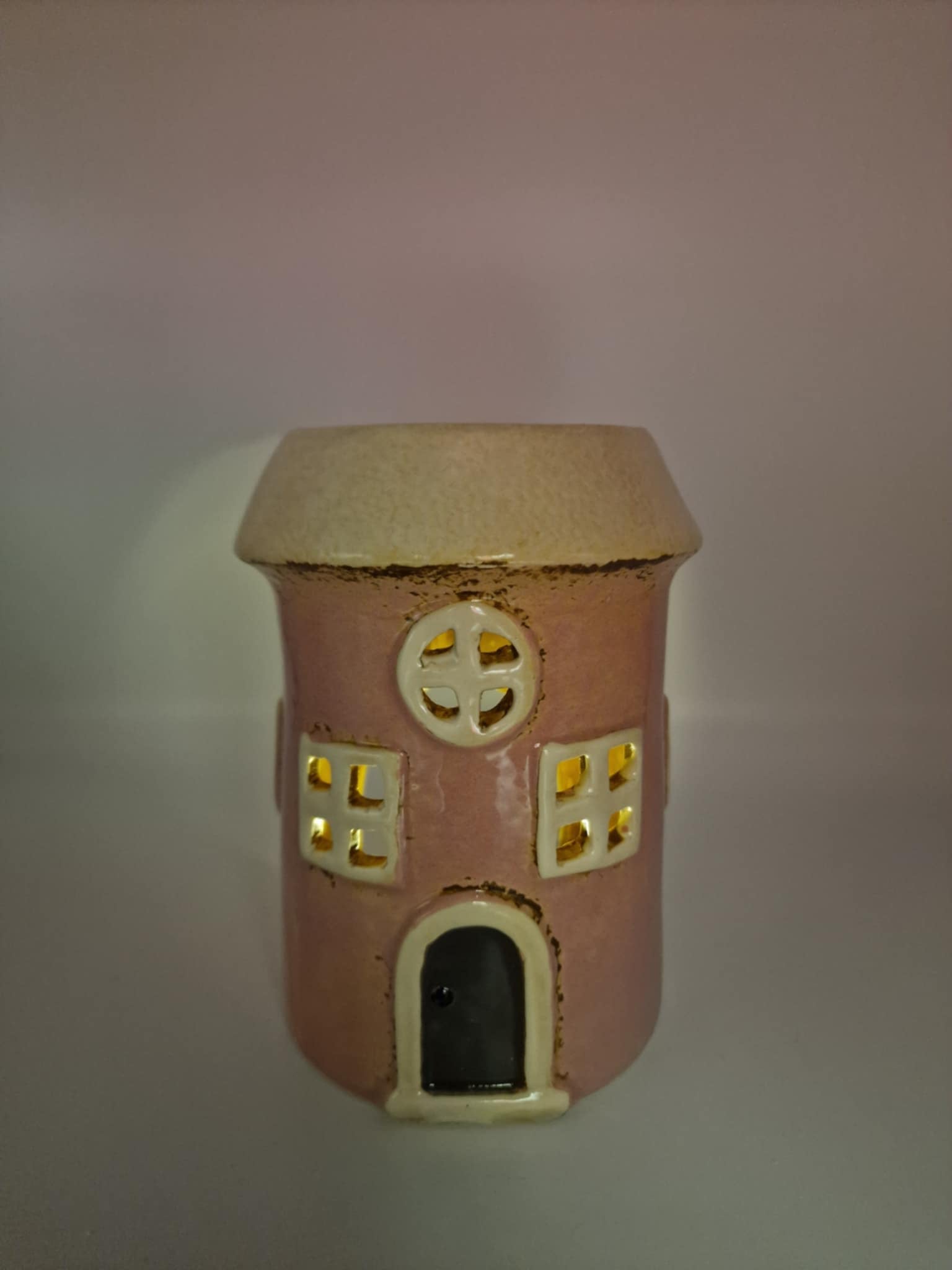 Round Pink Ceramic Wax Melt/Oil Burner Cottage